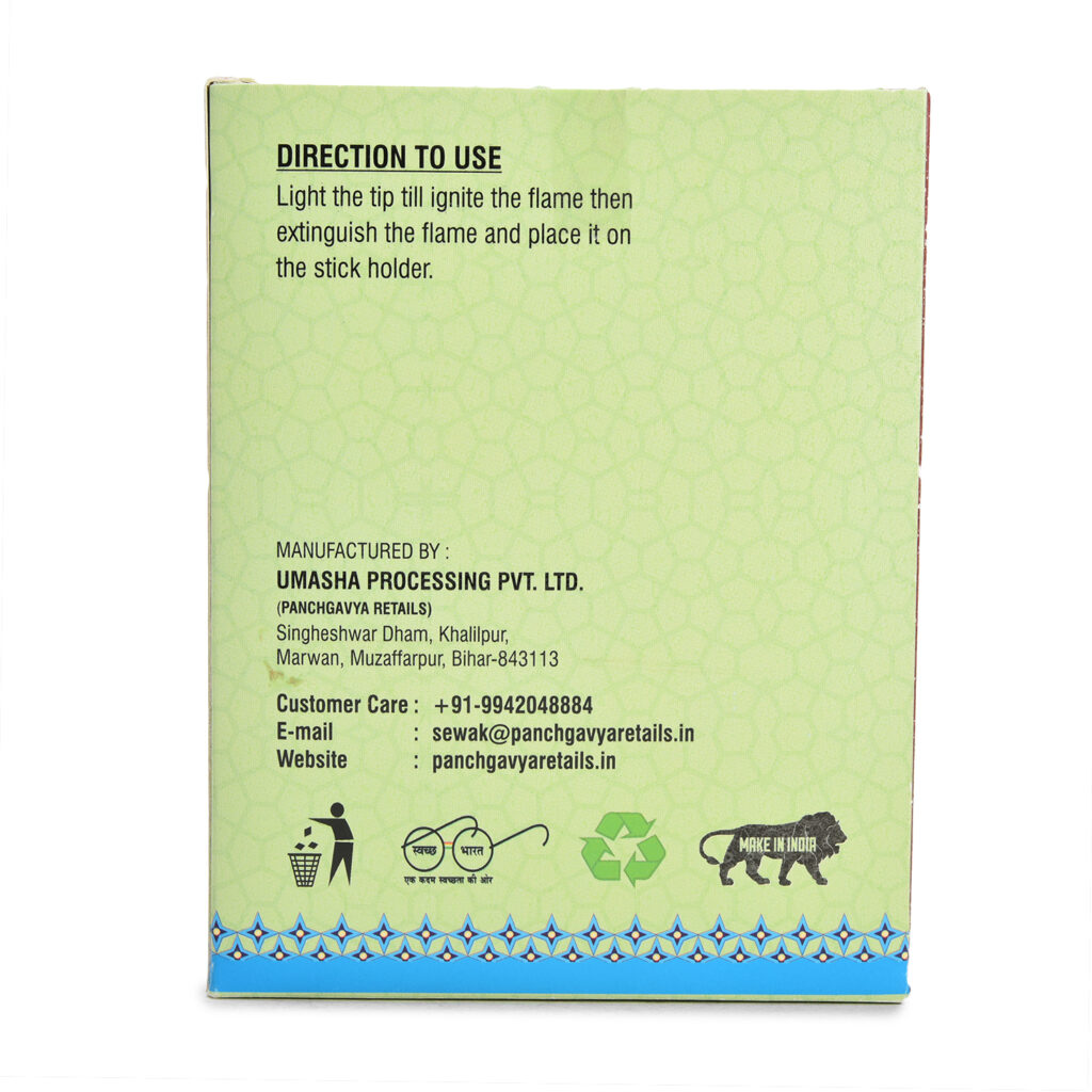 Panchgavya Retails द्वारा प्रस्तुत – पंचगव्य धूप स्टिक एक पारंपरिक, पूरी तरह से प्राकृतिक और हाथ से बनाई गई (Handmade) धूप है, जिसे शुद्ध गौ-उत्पादों और आयुर्वेदिक जड़ी-बूटियों से तैयार किया गया है। यह धूप स्टिक न केवल वातावरण को शुद्ध करती है, बल्कि मानसिक शांति और सकारात्मक ऊर्जा भी प्रदान करती है।