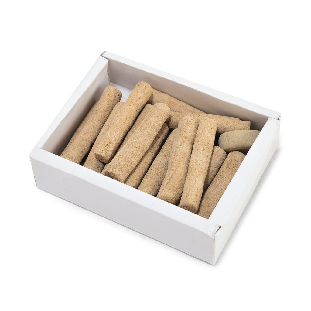गोमय (गाय का गोबर) पाउडर, धूना (प्राकृतिक रेजिन), वन औषधि और हल्का सा सुगंधित तेल (1%) का संयोजन